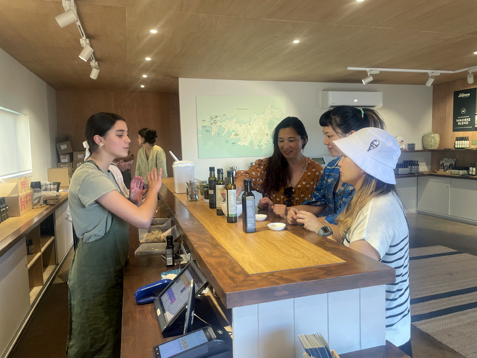 新しく開設されたAllpress Olive Groveでオリーブオイルテイスティング(第二次世界大戦時の跡が残る歴史保護区Stoney Batterご希望の方はオリーブオイルの代わりにこちらに向かいます)